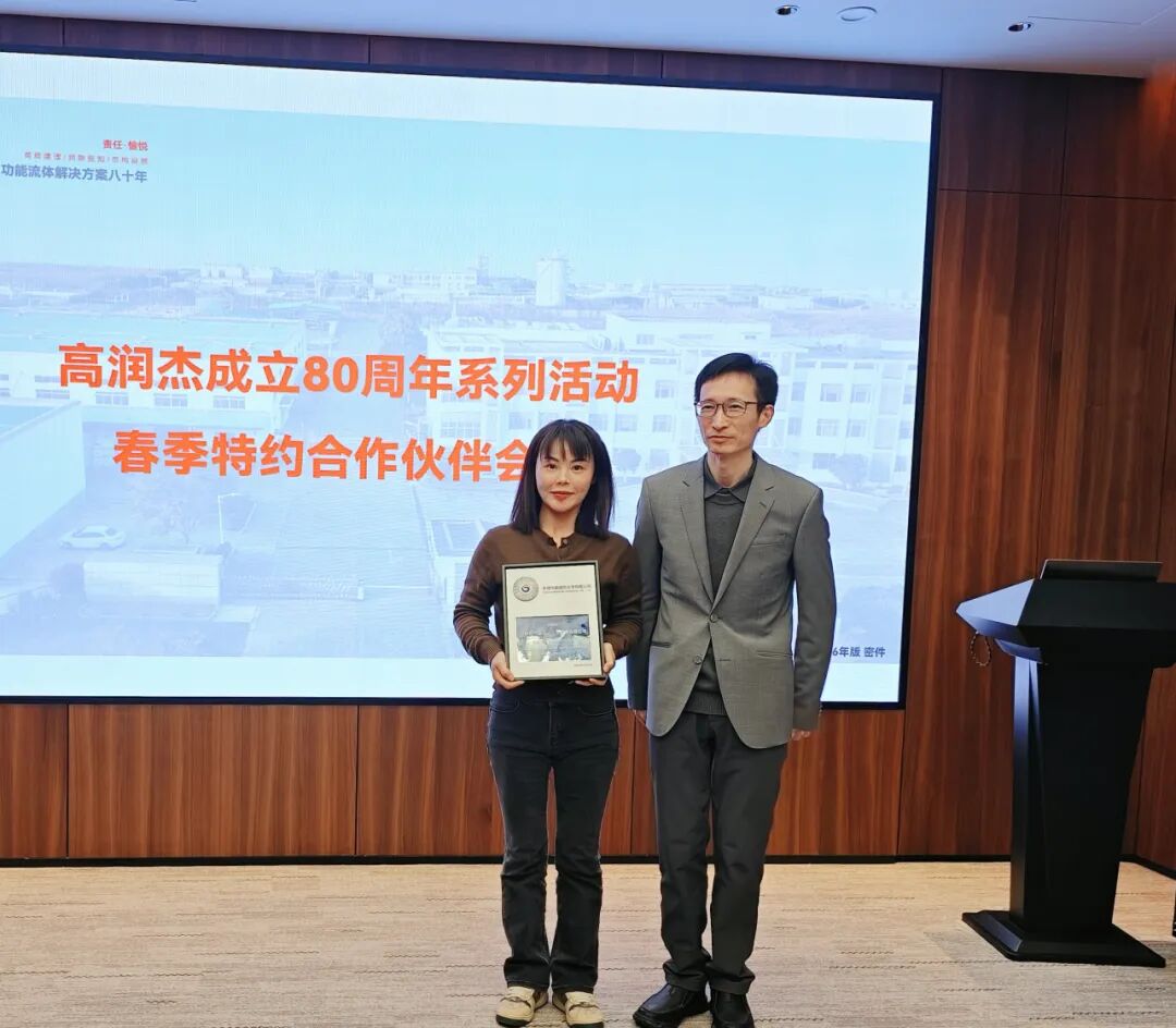 近日,無錫市高潤杰化學(xué)有限公司(以下簡稱高潤杰)成功舉辦了 高潤杰 80 周年系列活動之春季特約合作伙伴會議。本次會議誠邀部分合作伙伴代表,共同回顧高潤杰八十載的發(fā)展歷程,分享創(chuàng)新產(chǎn)品的應(yīng)用成果,并對為公司發(fā)展做出卓越貢獻的優(yōu)秀合作伙伴進行表彰,旨在攜手開啟新一年的合作新篇。